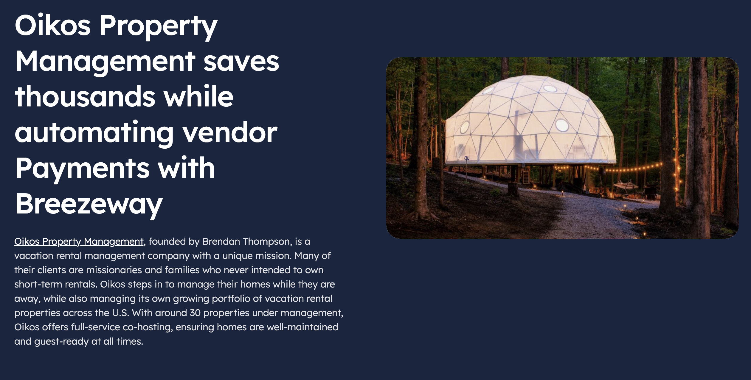 Oikos Property Management saves thousands while automating vendor Payments with Breezeway